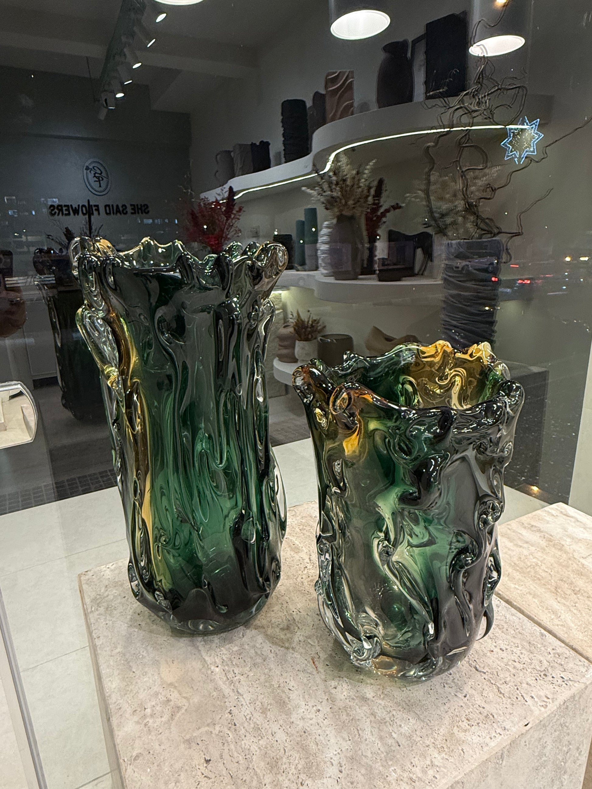 Duo Vases vert émeraude en verre soufflé